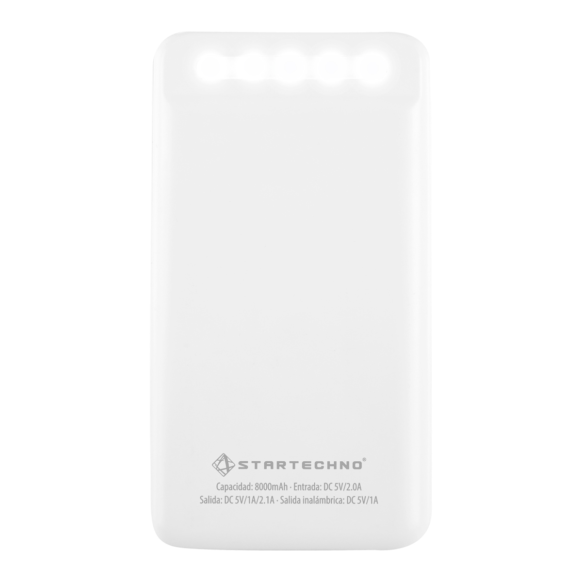 POWER BANK MAVY - Batería auxiliar para smartphone con linterna LED y función de carga inalámbrica. Capacidad 8,000 mAh, con 4 LEDs indicadores de carga. Cuenta con 2 salidas USB, entrada micro USB y tipo C exclusivo para recarga de la batería (no carga dispositivos). Potencia de carga inalámbrica de 5W. Incluye cable cargador compatible con USB y micro USB.