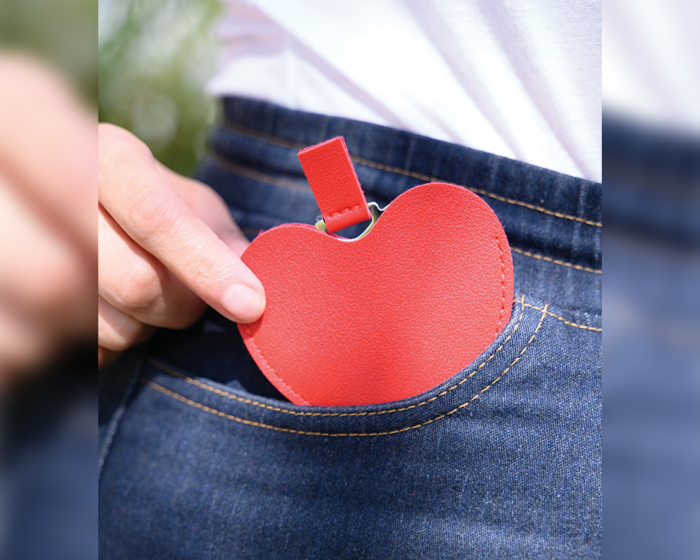 MINNIE - Espejo de acero inoxidable con cintillo y funda de poliuretano en forma de corazón.