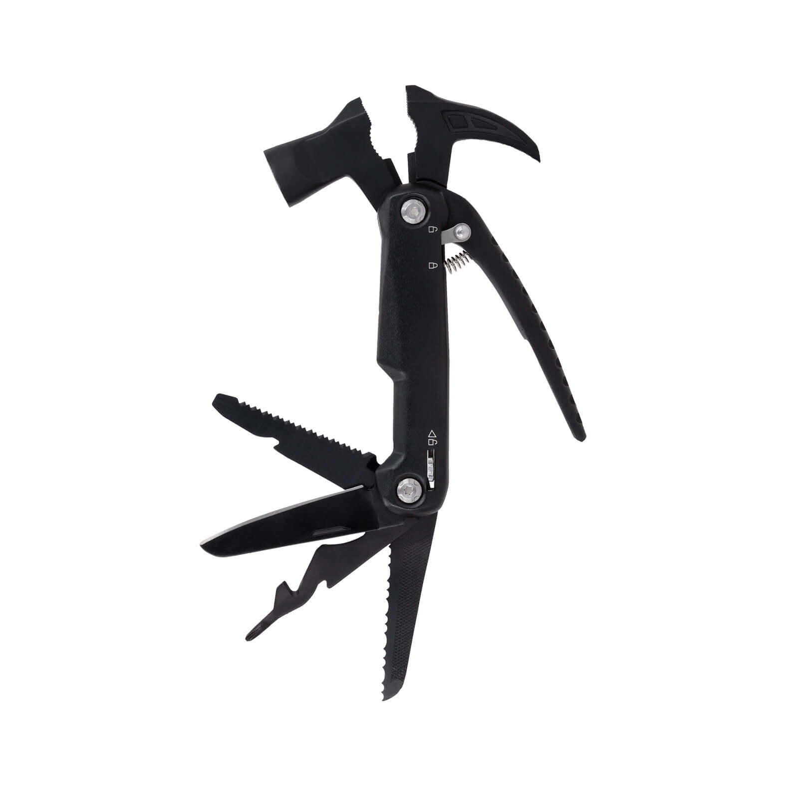 TITU Martillo multiusos que contiene: pinzas, navaja, 2 sierras y 1 destapador con destornillador. Incluye funda.