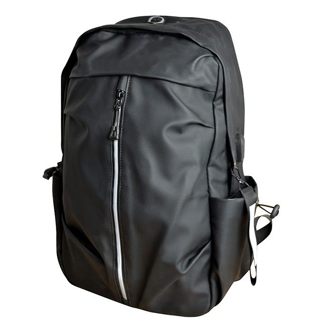 Backpack Kato Backpack Kato Salida lateral para usb y para audífonos. Amplio compartimento al frente con cierre en zipper. Impermeable al agua Banda posterior que conecta al sistema trolley de equipajes. Correas ajustables y acojinadas. Prácticos bolsillos laterales con cierre ajustable. Incluye llavero para personalizar. Compartimento interior Material Polyester