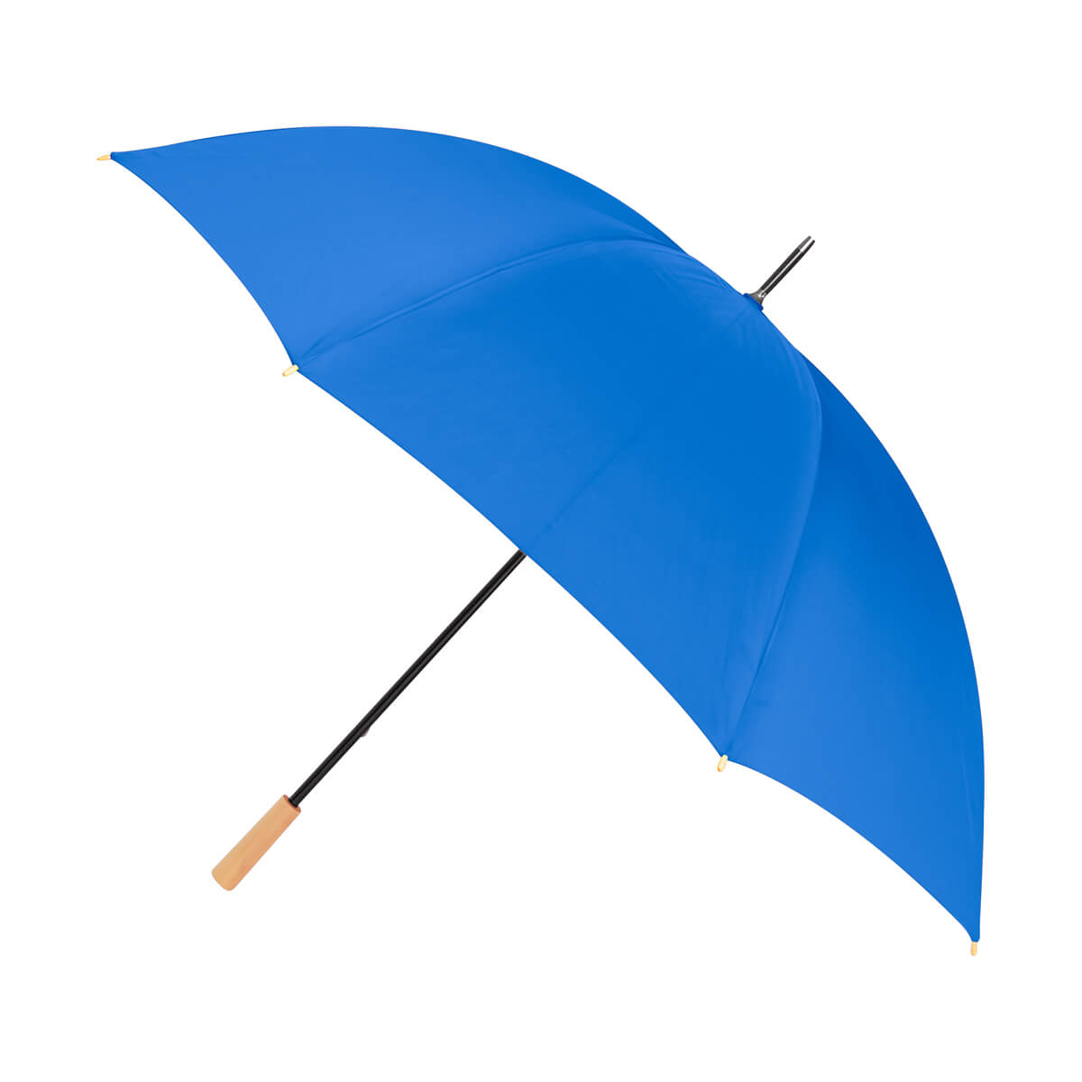 PARAGUAS NUA - Paraguas de 8 paneles con apertura automática. fabricado en plástico reciclado (RPET). Cuenta con mango y punteras de madera. Incluye funda protectora.