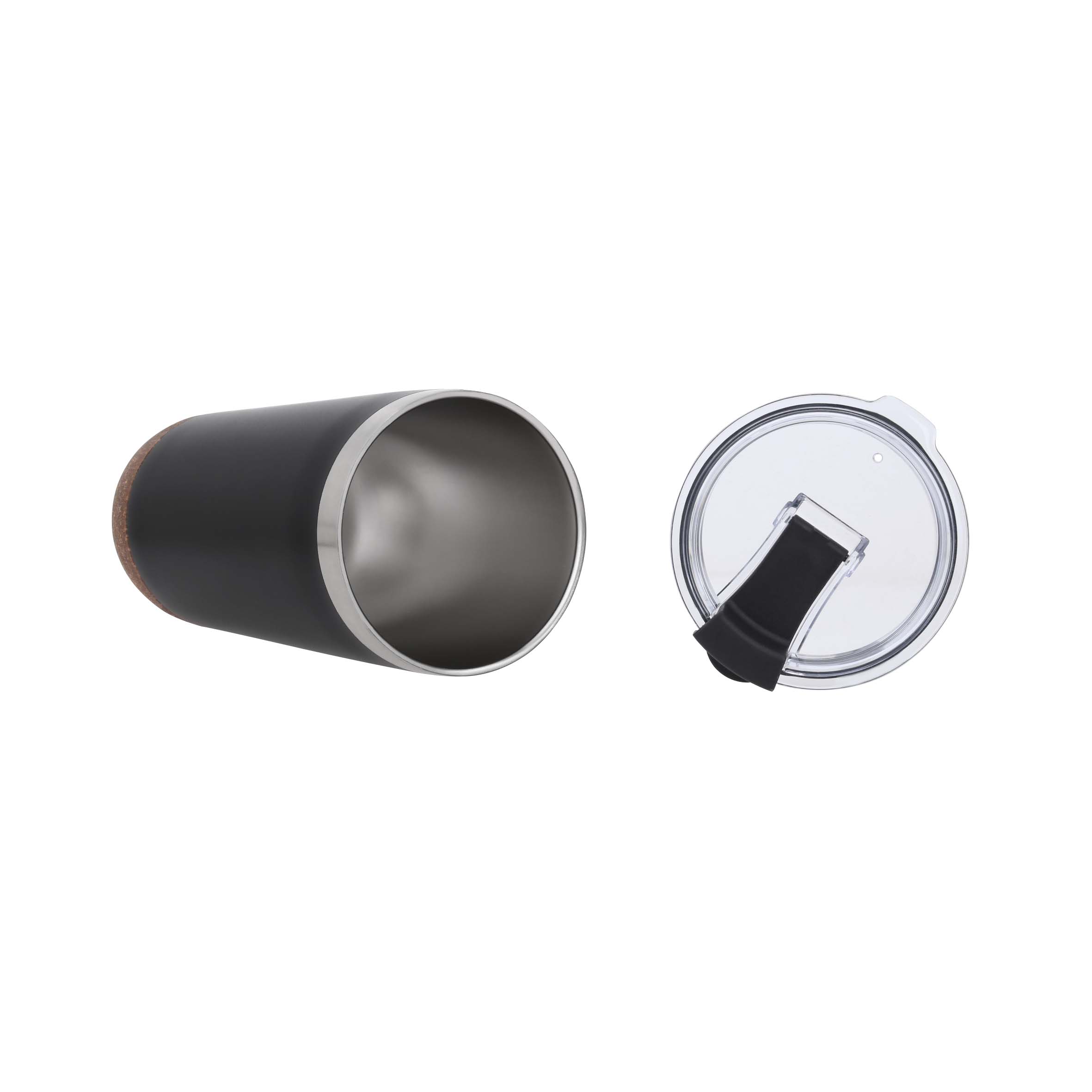 FAGUS Termo insulado al vacío con doble pared de acero inoxidable, acabado rugoso, base de corcho y tapa de cierre a presión.