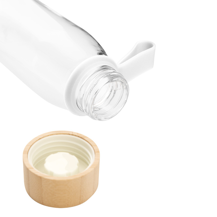MATERIAL: Vidrio, bambú, polipropileno y silicona MEDIDAS: 6,4 x 22,8 cm IMPRESION: Serigrafía, tampografía
