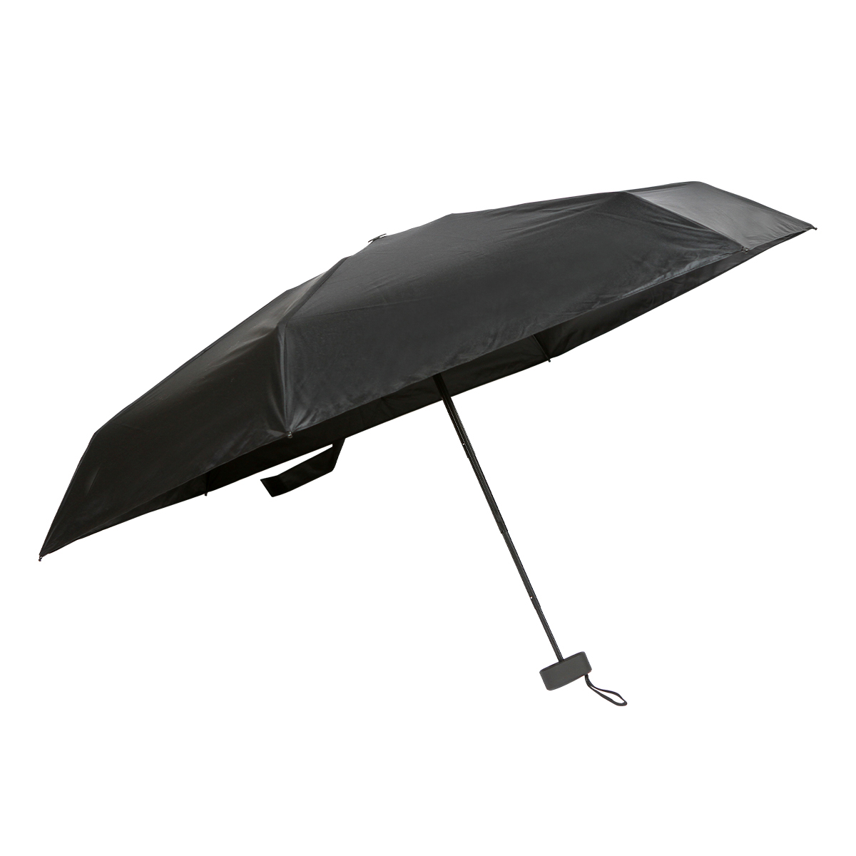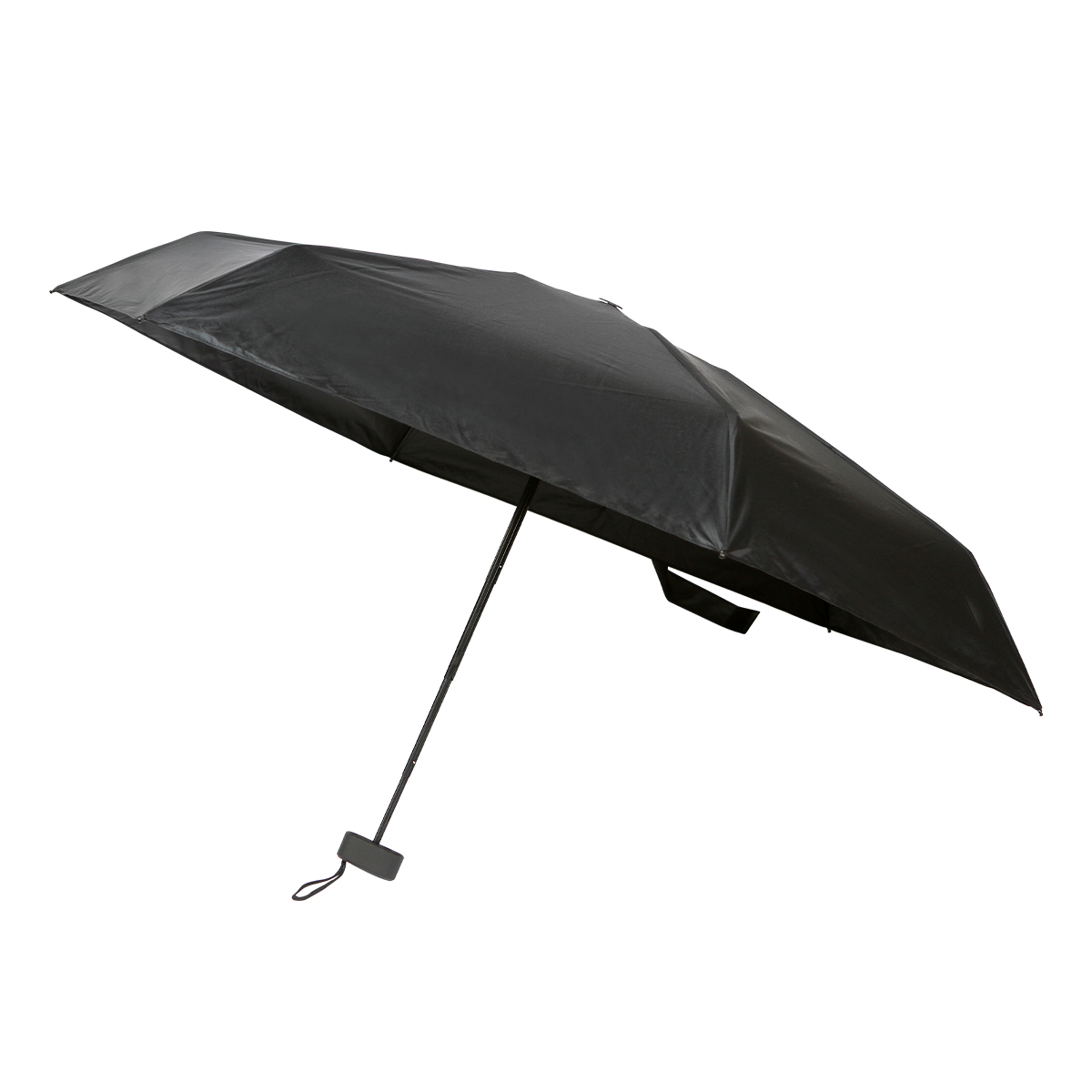 Paraguas Strath. - Paraguas plegable fabricado con tela de poliéster resistente al agua, diseñada para mantenerte seco incluso durante lluvias intensas. Su estructura interna está compuesta por varillas metálicas ligeras, que brindan estabilidad y soporte sin agregar peso excesivo. El mango es de plástico ergonómico, acompañado de una correa de seguridad que facilita su agarre y transporte.