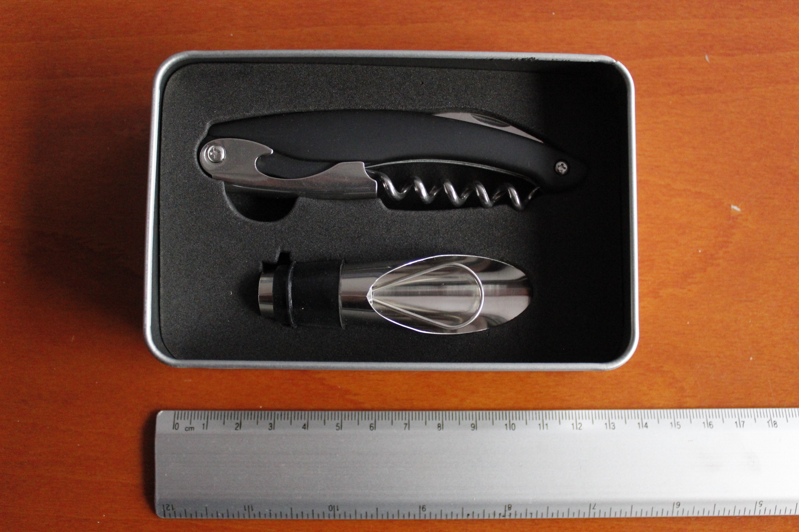 CONDE - Set de vino con acabado brillante y punta de color que incluye: sacacorc...