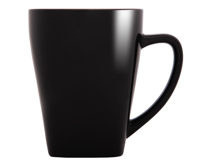 ABBA - Taza con base cuadrada y borde superior redondo, exterior a color semi mate e interior blanco brillante. CAP. 12 OZ. Venta en múltiplos de 12.