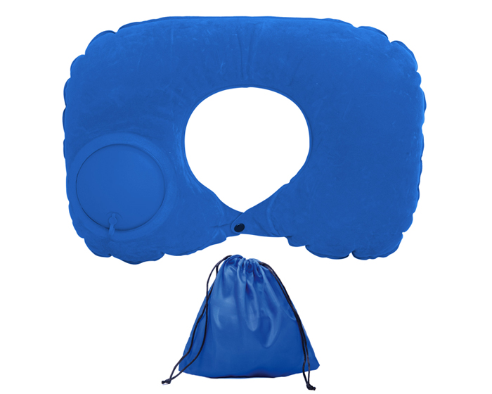 DREAMY - Almohada inflable con acabado de terciopelo para viajes. Sistema para inflarse mecánicamente. Incluye funda.