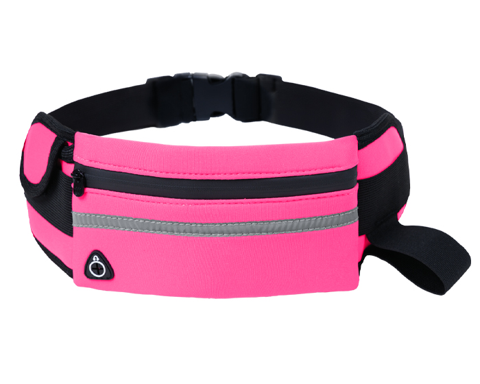ZUMBA - Cangurera con cinta de resorte ajustable y broche de seguridad. Cuenta con 2 compartimentos laterales, 1 para guardar accesorios con broche de contacto y otro de resorte para botellas. Compartimento interno con cierre, cinta reflejante y salida para audífonos de cable.