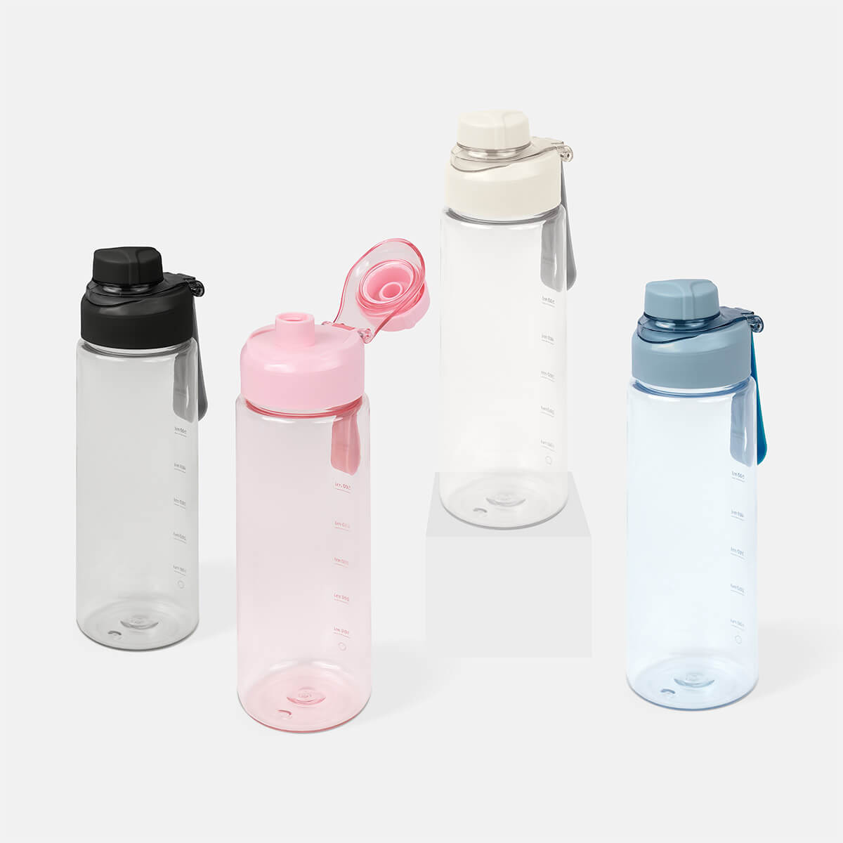 CILINDRO WODA - Cilindro de plástico de una pared. Tapa de plástico con sistema de rosca y sobretapa para la boquilla. Cuenta con asa de silicón para llevarlo cómodamente e indicador de mililitros. Perfecto para el día a día.