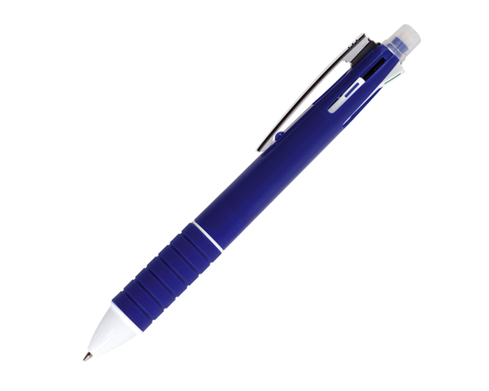 BAKÚ - Bolígrafo 5 en 1: lapicero, tinta roja, azul, negra y verde; con goma en el extremo superior. Mecanismo deslizante para cambio de tinta.