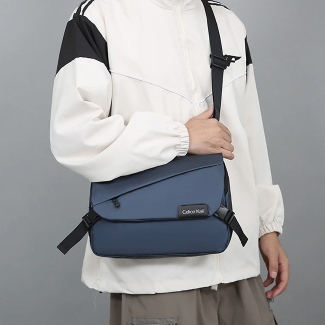 Maletín Falcao Maletín Falcao • Organizadores interiores y compartimento para tablet. • Bolsillo al frente y posterior con cierre en zipper. • Cierres laterales con hebilla. • Impermeable al agua. • Incluye llavero interior. • Etiqueta al frente para personalizar. • Correa larga ajustable con refuerzo acolchado. • Colores disponibles: Azul y Gris. Material: Nylon con revestimiento de PU Impresión: Láser, Tampografía, Serigrafía