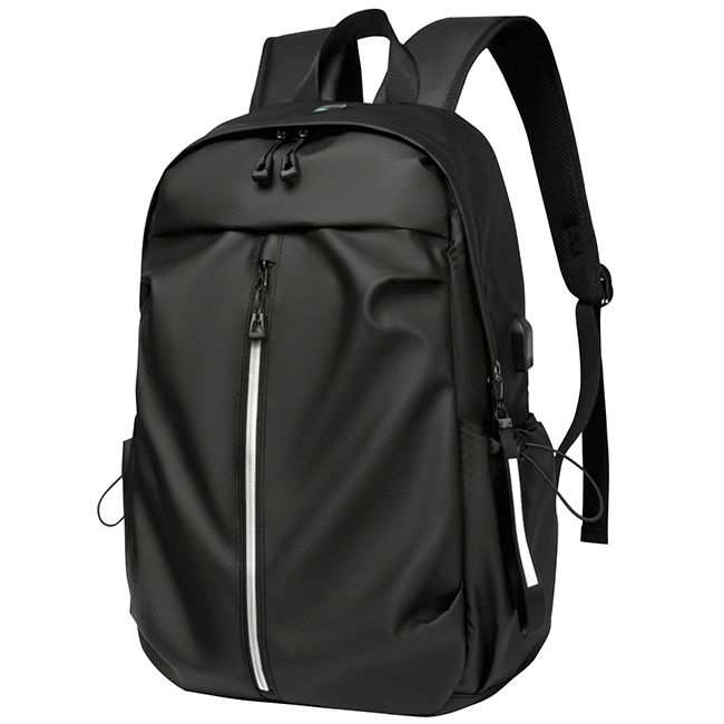 Backpack Kato Backpack Kato • Salida lateral para USB y audífonos • Amplio compartimento frontal con cierre en zipper • Impermeable al agua • Banda posterior compatible con sistema trolley de equipaje • Correas ajustables y acojinadas • Bolsillos laterales con cierre ajustable • Incluye llavero para personalizar • Compartimento interior Material: Polyester Impresión: Serigrafía
