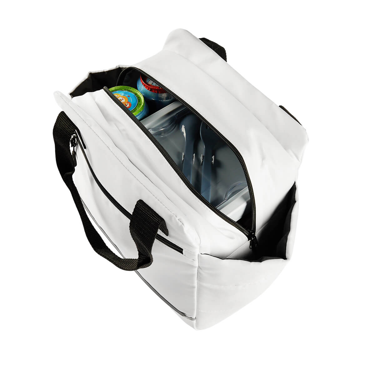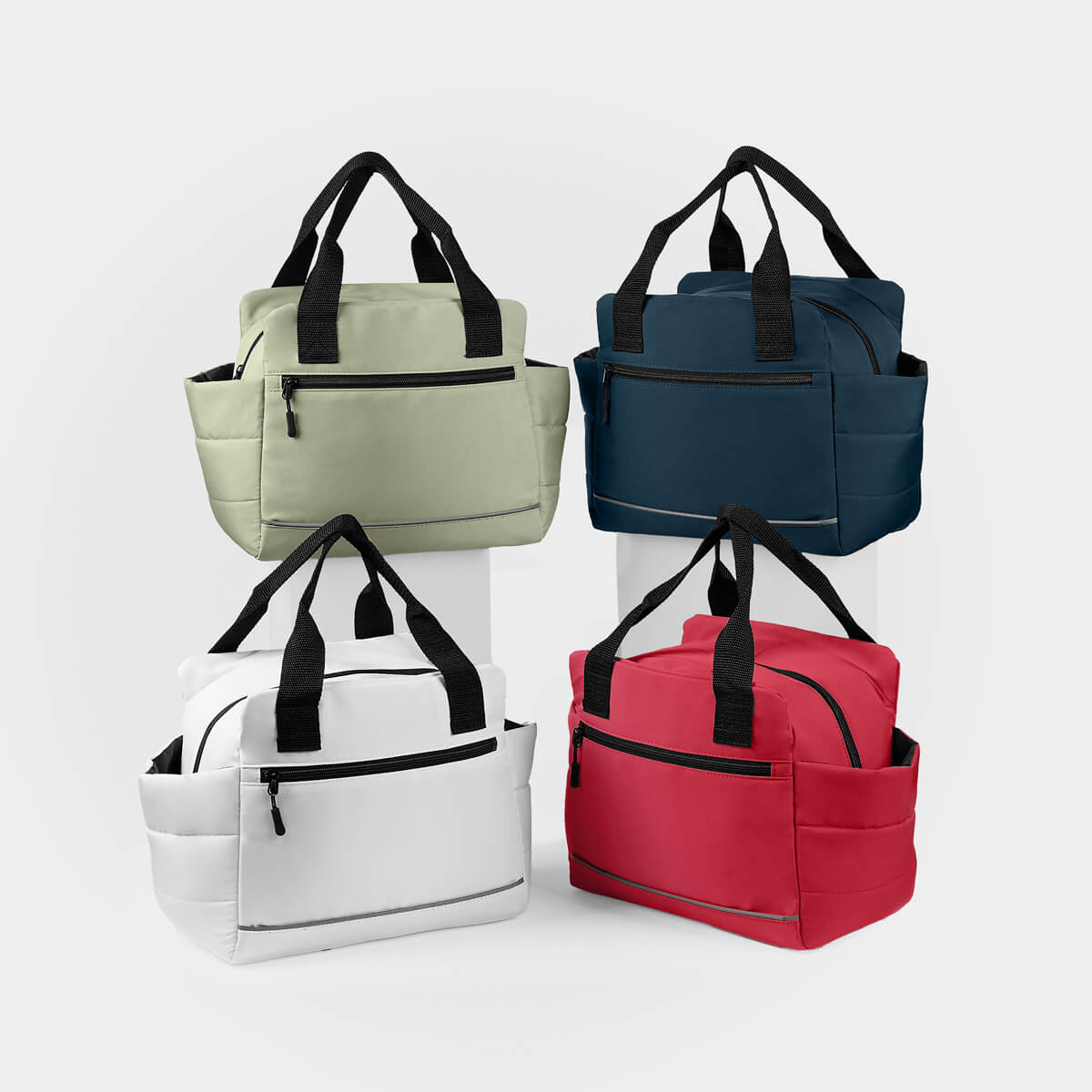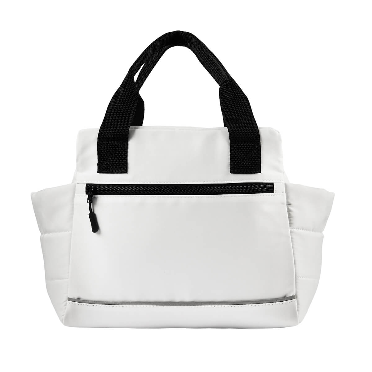 LONCHERA NUAN - Lonchera con interior plastificado. Compartimento principal con cierre, dos bolsillos laterales y un bolsillo frontal también con cierre, ideal para llevar contigo pequeños snacks. Adicional, agregar un detalle reflejante en la parte frontal, lo que aporta un toque de diseño. Ideal para escuela u oficina, lleva tus alimentos con estilo y de forma segura. Capacidad 12 latas.