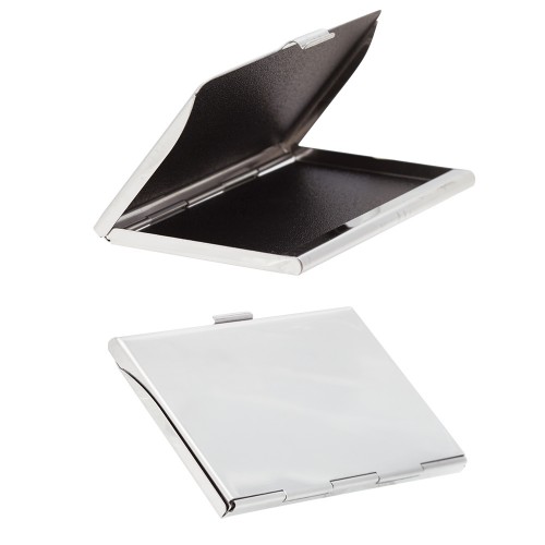 Tarjetero metálico cromado con acabado tipo espejo. Ideal para llevarlo a todos lados y proteger las tarjetas más importantes.