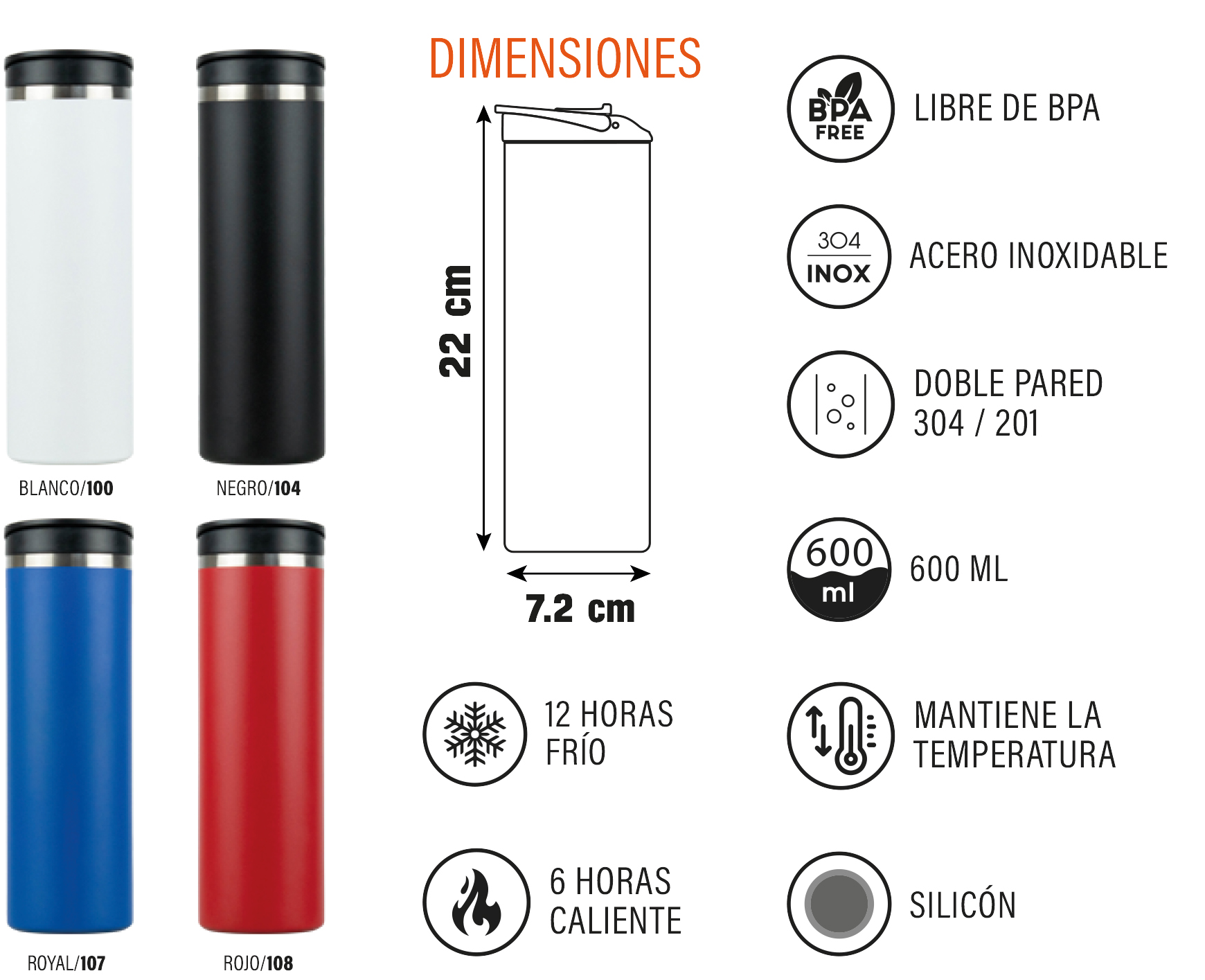 Termo Emporio . Fabricado en acero inoxidable 304, grado alimenticio con doble ...