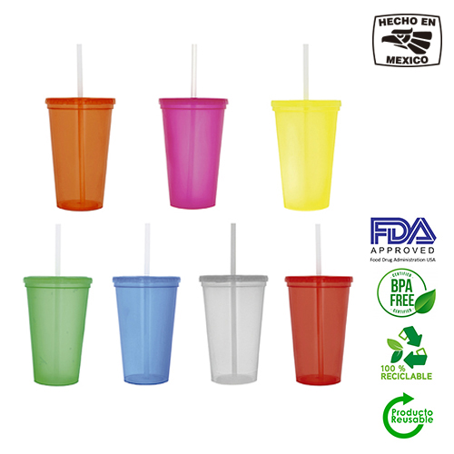 MATERIAL: Plástico MEDIDAS: 6 x 22 cm. Capacidad 650 ml. IMPRESION: Serigrafía, Tampografía MED. EMPAQUE: 37,00 x 38,00 x 52,00 cm PESO EMPAQUE: 4 lg PIEZAS EMPAQUE: 60 pzs