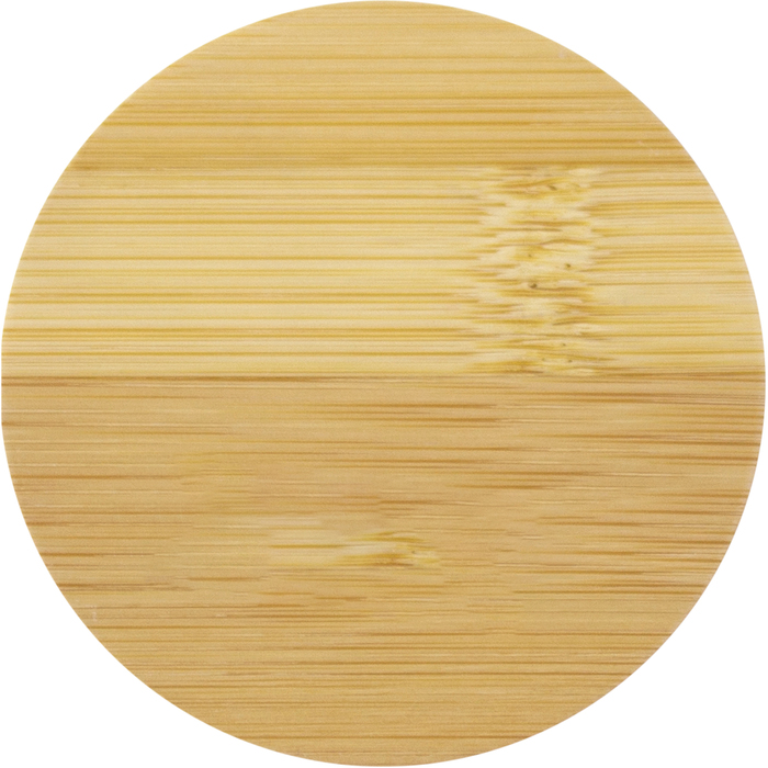 MATERIAL: Bambú y vidrio MEDIDAS: 7,3 cm. Espesor 8mm IMPRESION: Serigrafía, tampografía, grabado láser MED. EMPAQUE: 22,50 x 34,00 x 32,50 cm PESO EMPAQUE: 500 pzs PIEZAS EMPAQUE: 500 pzs