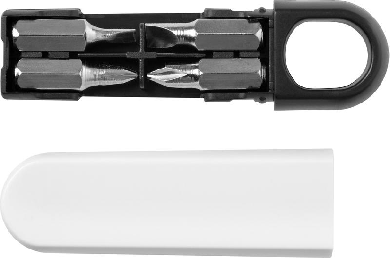 HERRAMIENTERO "SCREW" Desarmador con 4 puntas intercambiables que se guardan en el interior. Extremo de la tapa imantado para sujetar las puntas.