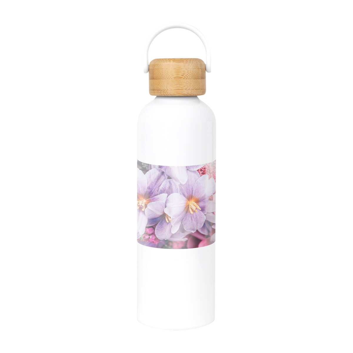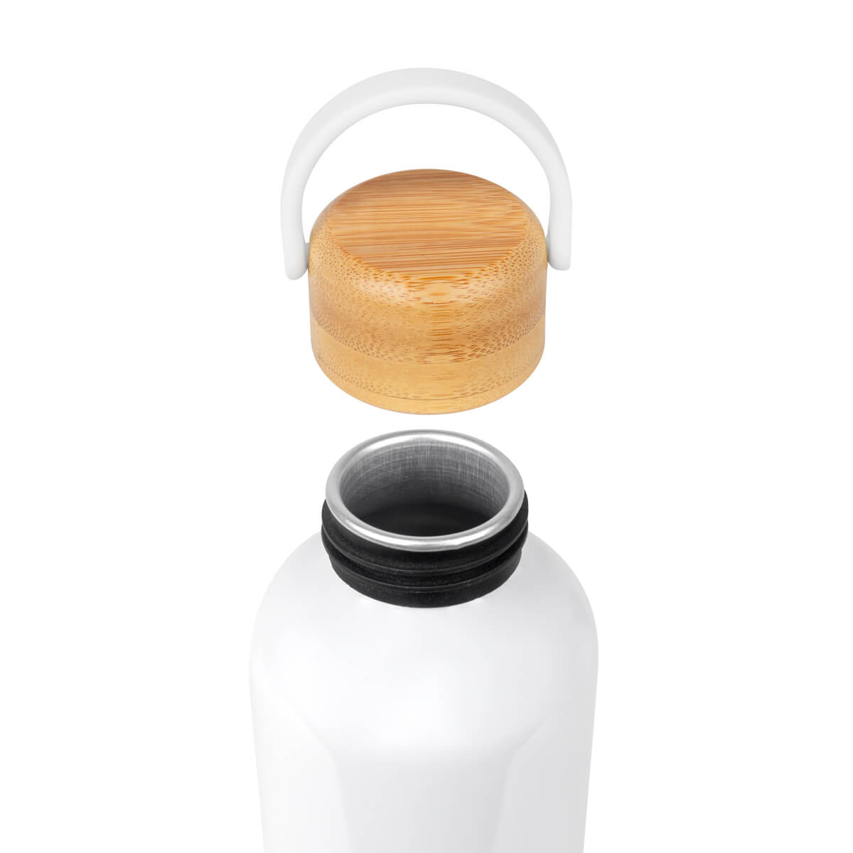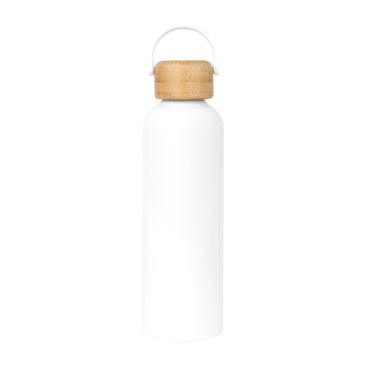 CILINDRO TAKE - Cilindro metálico para sublimar de una pared. Tapa de bambú con cierre de rosca y asa de plástico. Incluye caja individual. El bambú es un producto natural el cual puede presentar variaciones en tonalidades y vetas.