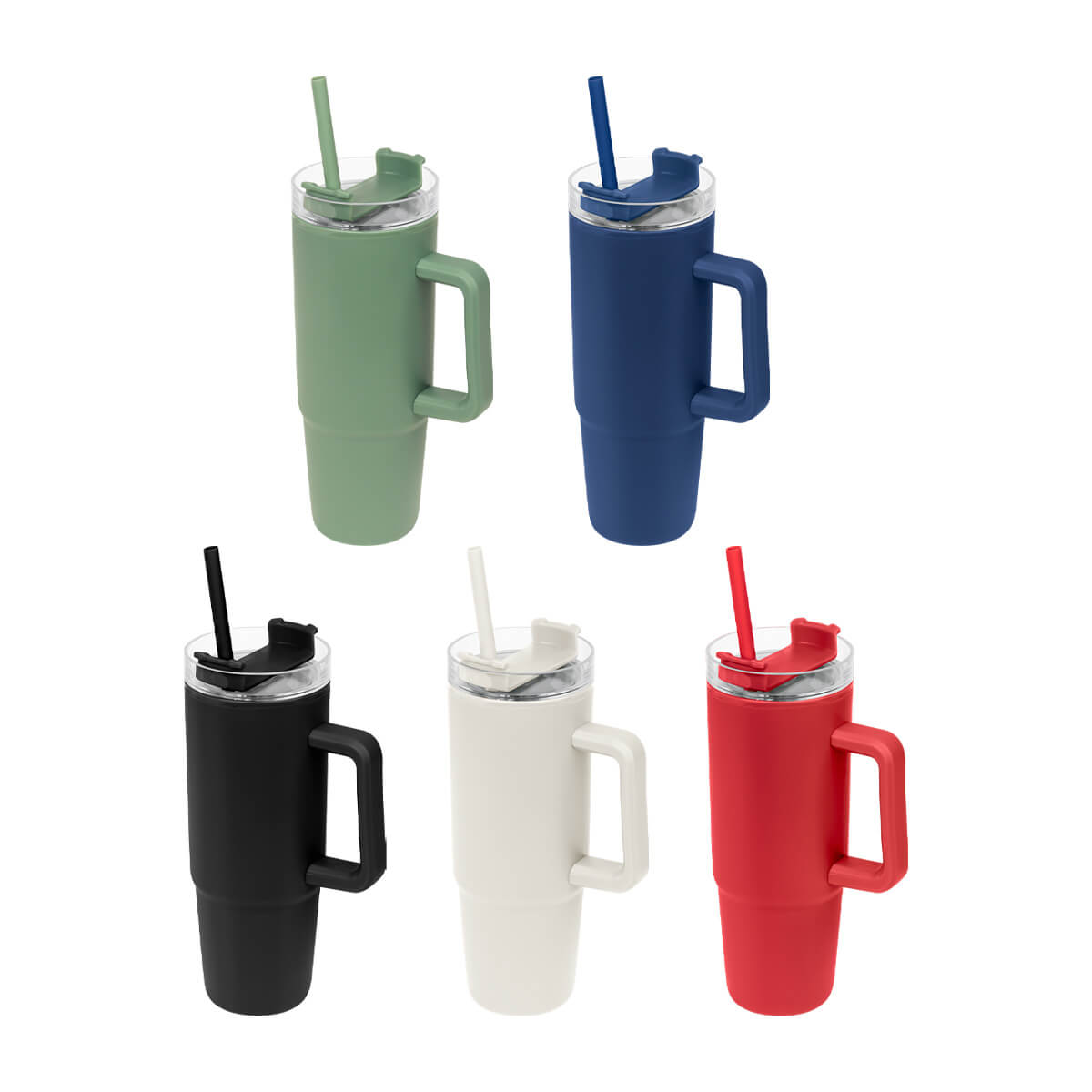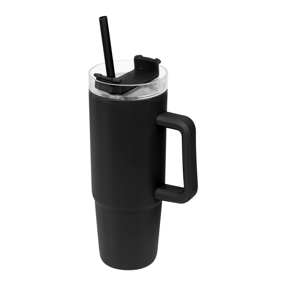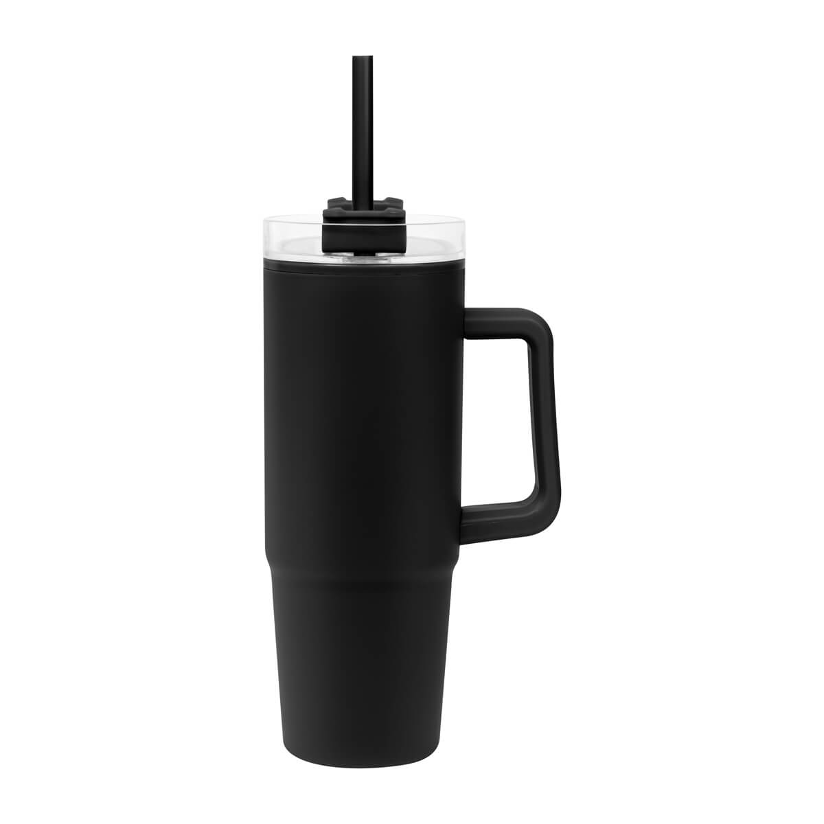 TERMO EDAN - De doble pared. Pared interna y externa de plástico. Tapa de plástico con cierre de rosca. Sobre tapa giratoria de plástico con opción para beber con popote o boquilla tradicional. Capacidad de 30 Oz. Base de 7 cm de diámetro. Incluye popote de plástico y caja individual.