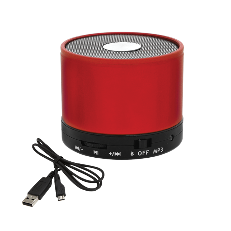 Bocina Bluetooth con batería recargable, portátil con entrada auxiliar y lector de memorias. Rango de conexión 10 metros. Incluye cable cargador USB