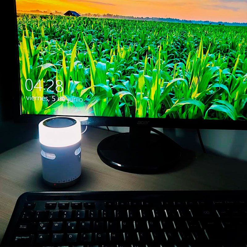 BOCINA BLUETOOTH EMPIRE Con lámpara TOUCH de tres intensidades. Función Manos Libres incluida. Base anti-derrapante. Alcance máximo de conexión 10 m. Con entrada Auxiliar, Micro SD, Android y USB.