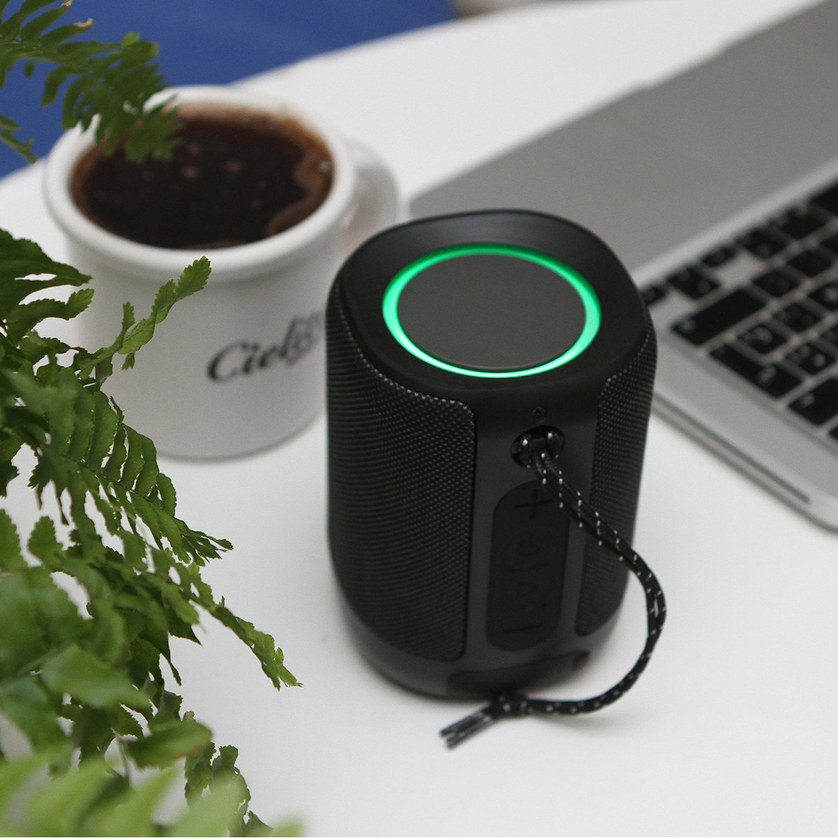 Bocina Aneho. - Bocina con conexión de sonido sin cables, radio FM, calidad de sonido premium, fabricada en plástico ABS+Metal, con cubierta de tela e iluminación LED en la parte superior. Incluye cordón para fácil transportación y cable para carga vía USB y entrada para tarjeta TF. Incluye caja de cartón individual.