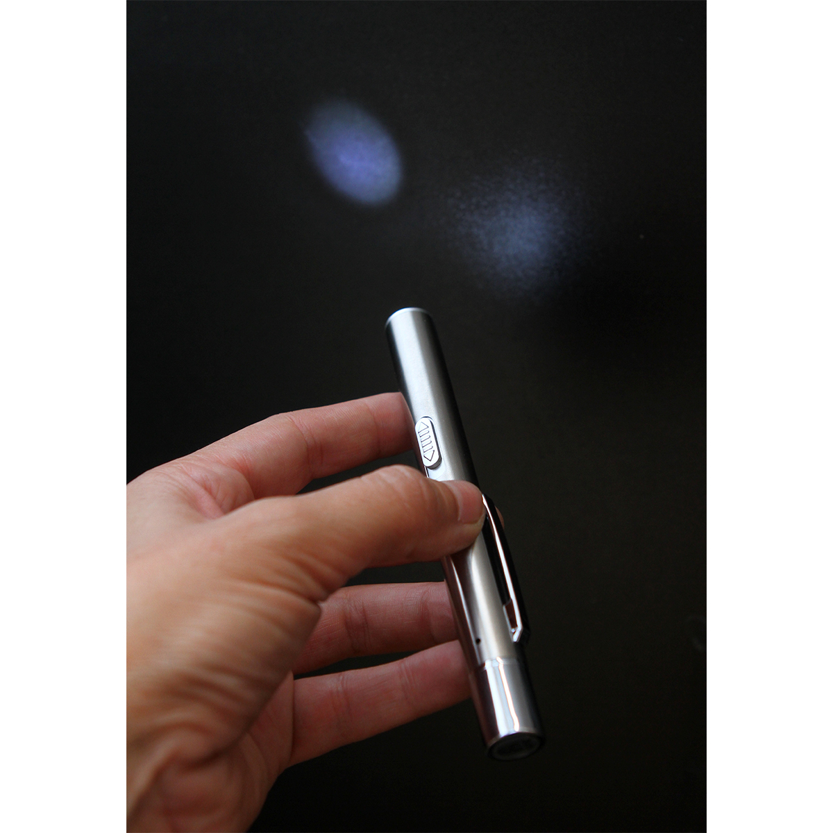 LUMEN Lámpara LED de metal con botón de presión en la parte inferior, con det...