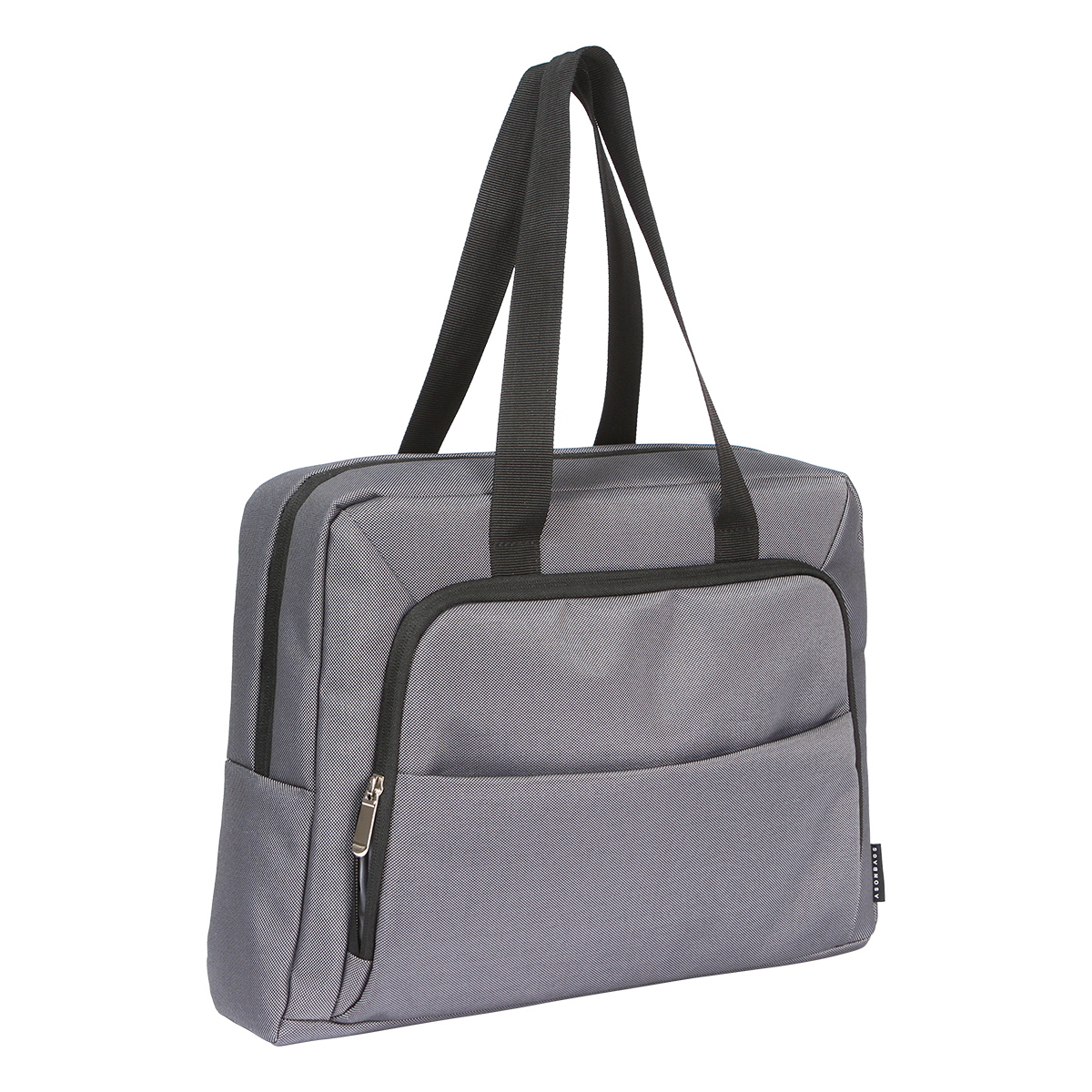 Portafolio Caála. - Portafolio para laptop fabricada en poliéster, con relleno de espuma de PE. Incluye compartimento principal, secundario, además de bolsillo para documentos y dos asas.