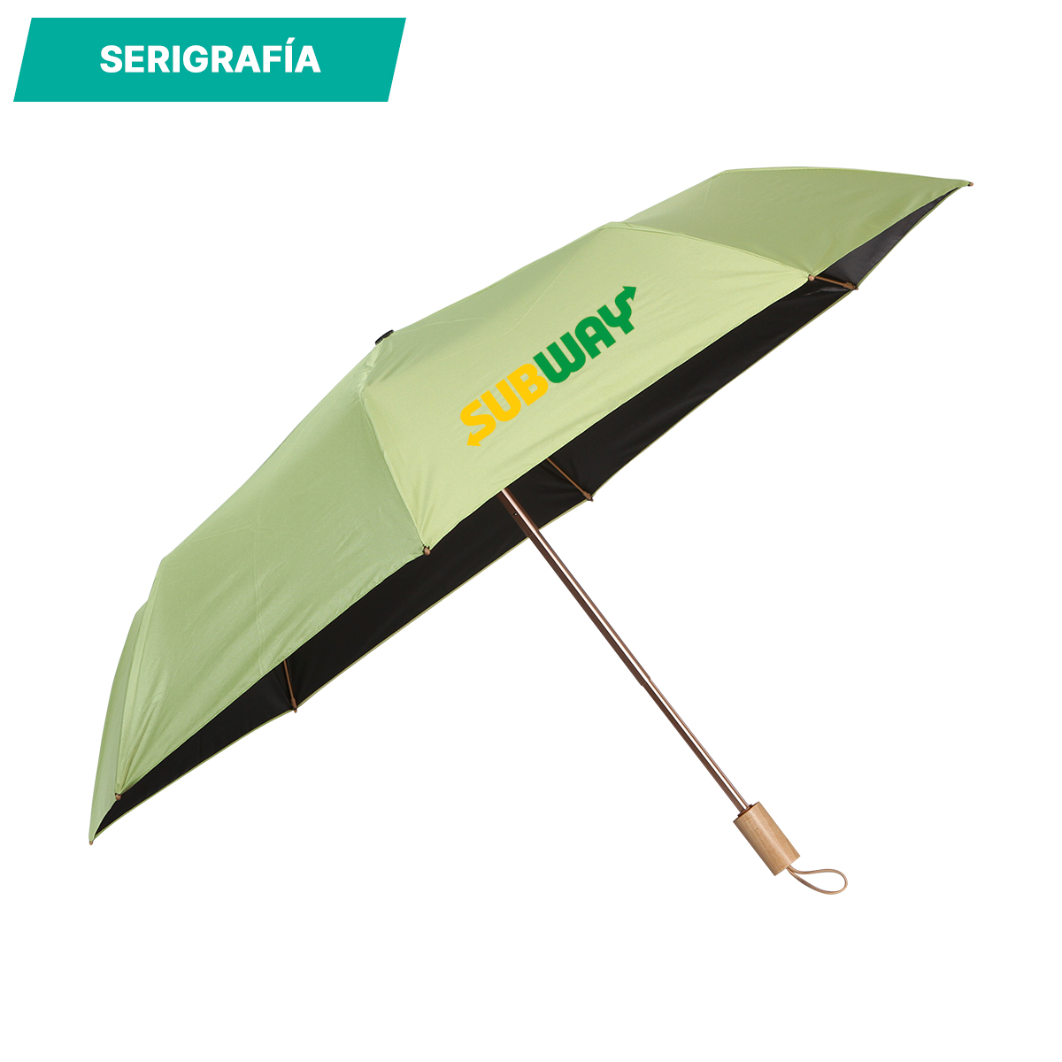Paraguas Brassi. - Paraguas fabricada en poliéster, con costillas de aluminio color dorado y agarradera de madera con acabado en laca. Tiene una dimensión de 100*100 cm. Su tamaño compacto cuando está cerrado lo hace fácil de llevar a cualquier parte. Con su diseño resistente y características ergonómicas, es la elección perfecta para mantenerse protegido de los elementos climáticos en tu vida diaria.