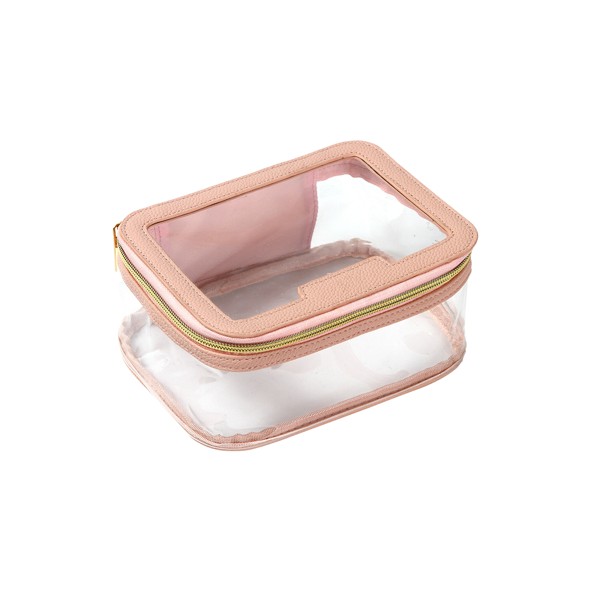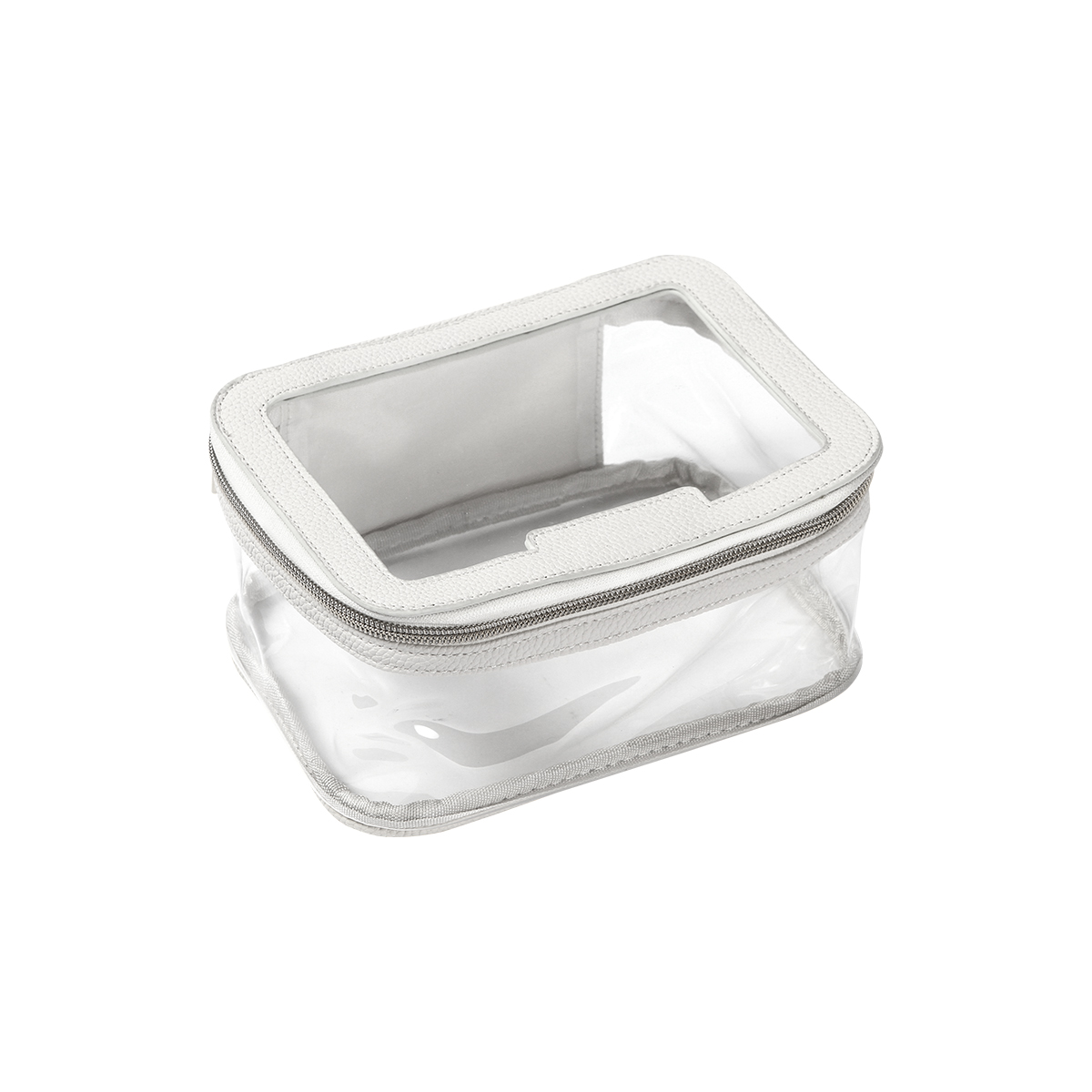 Cosmetiquera Strathy. - Cosmetiquera fabricada en plástico PVC traslúcida con detalles en PU. Con un compartimento principal con cierre metálico. Diseñada para organizar productos cosméticos y otros de cuidado personal, como cremas, maquillaje, cepillos, etc. Su ventana transparente ayuda a tener una mejor visibilidad de dichos artículos."