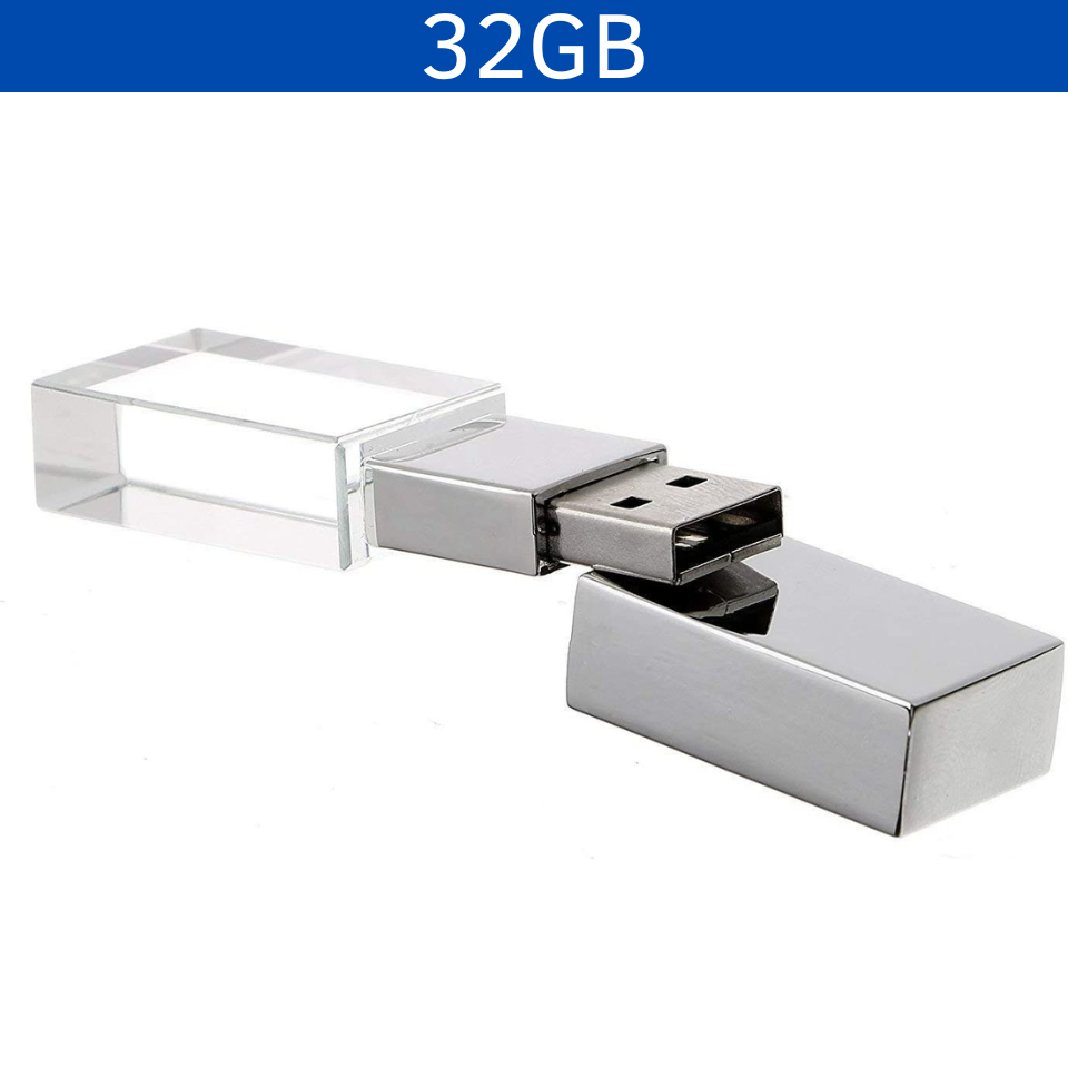 Memoria USB con estilo clásico y vanguardista fabricada en cristal (se ilumina en color rojo) y tapa de metal con acabado cromo