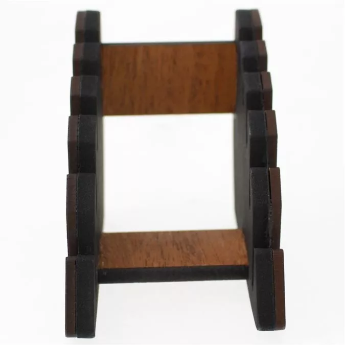 Tarjetero múltiple Vector DANSK Moderno y funcional soporte de tarjetas de visita para escritorio. Ideal para oficinas que comparten una recepción. Fabricado en plástico EVA, MDF y chapa de caoba. Cuenta con 5 aberturas que permiten organizar mejor tus tarjetas. HECHO EN MÉXICO.